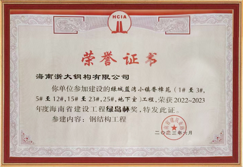 海南省房屋市政工程優(yōu)質(zhì)樣板工程(綠島杯獎)